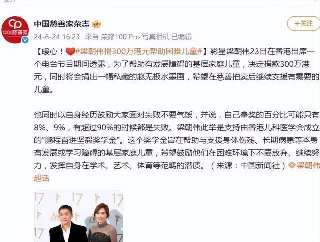 事实上,梁朝伟的慈善足迹远不止于此。2025年6月,他以“627公益季”名义参与儿童癌病基金筹款,单次活动捐出100万港元;而在2024年6月,他个人捐资300万港元设立“鹏程奋进坚毅奖学金”,专门资助长期病患及基层儿童教育,更捐出珍藏的赵无极画作拍卖以扩大资助范围。值得关注的是,这些捐款多数通过机构专项通道进行,从未进行公开炒作,展现了他低调务实的公益态度。